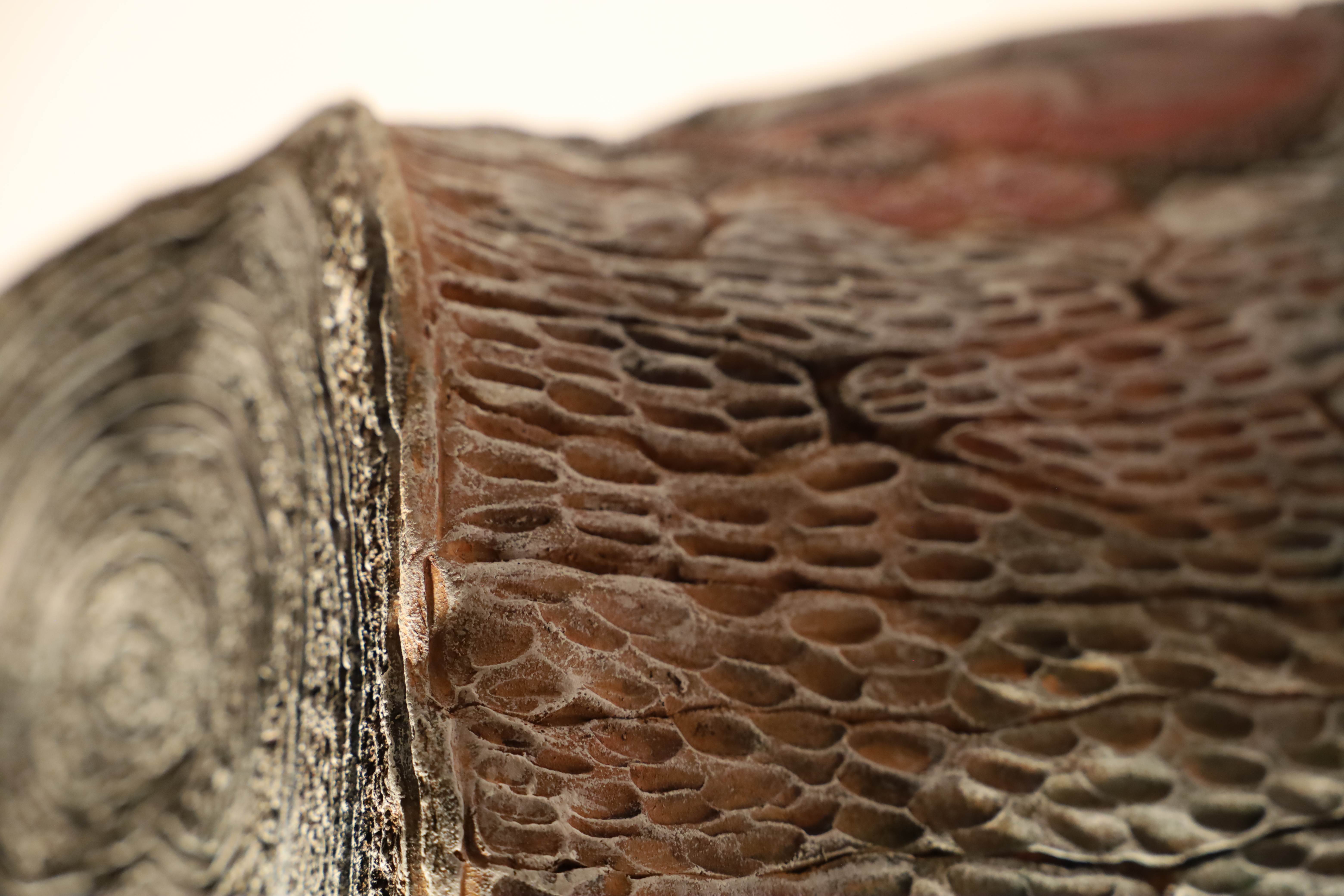 Dayna Ball, Growth, High Fire Death Valley Clay, Acrylic Paint, 16 x 16 x 10 inches, 2022 - 09 Growth discusses the beginning of human life in this most vulnerable in utero stage. Growth discusses how all organisms experience life stages, how intraorganistically, or across species, life is still life. In the case of the human species, life definitively begins at conception, but currently a huge portion of scientific misinformation runs amok. The pro-abortion argument is really not an argument of when human life begins, but rather when it is protected and valued. It is surely alarming how so many individuals are willing to deny science in order to justify actions they wish. While this piece nods to barbaric modern killing practices in utero, Growth really discusses the beginnings of life for us all.