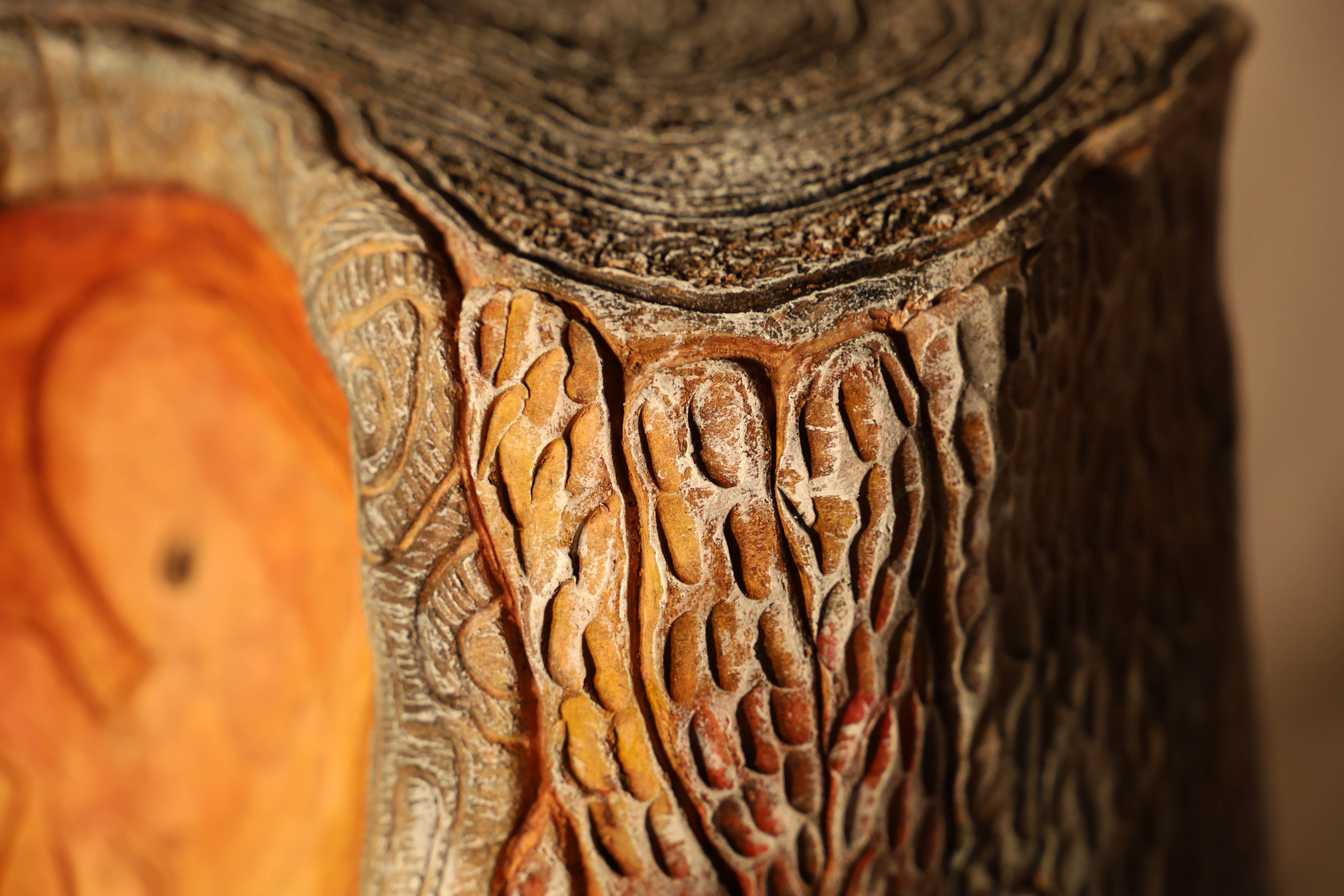 Dayna Ball, Growth, High Fire Death Valley Clay, Acrylic Paint, 16 x 16 x 10 inches, 2022 - 10 Growth discusses the beginning of human life in this most vulnerable in utero stage. Growth discusses how all organisms experience life stages, how intraorganistically, or across species, life is still life. In the case of the human species, life definitively begins at conception, but currently a huge portion of scientific misinformation runs amok. The pro-abortion argument is really not an argument of when human life begins, but rather when it is protected and valued. It is surely alarming how so many individuals are willing to deny science in order to justify actions they wish. While this piece nods to barbaric modern killing practices in utero, Growth really discusses the beginnings of life for us all.