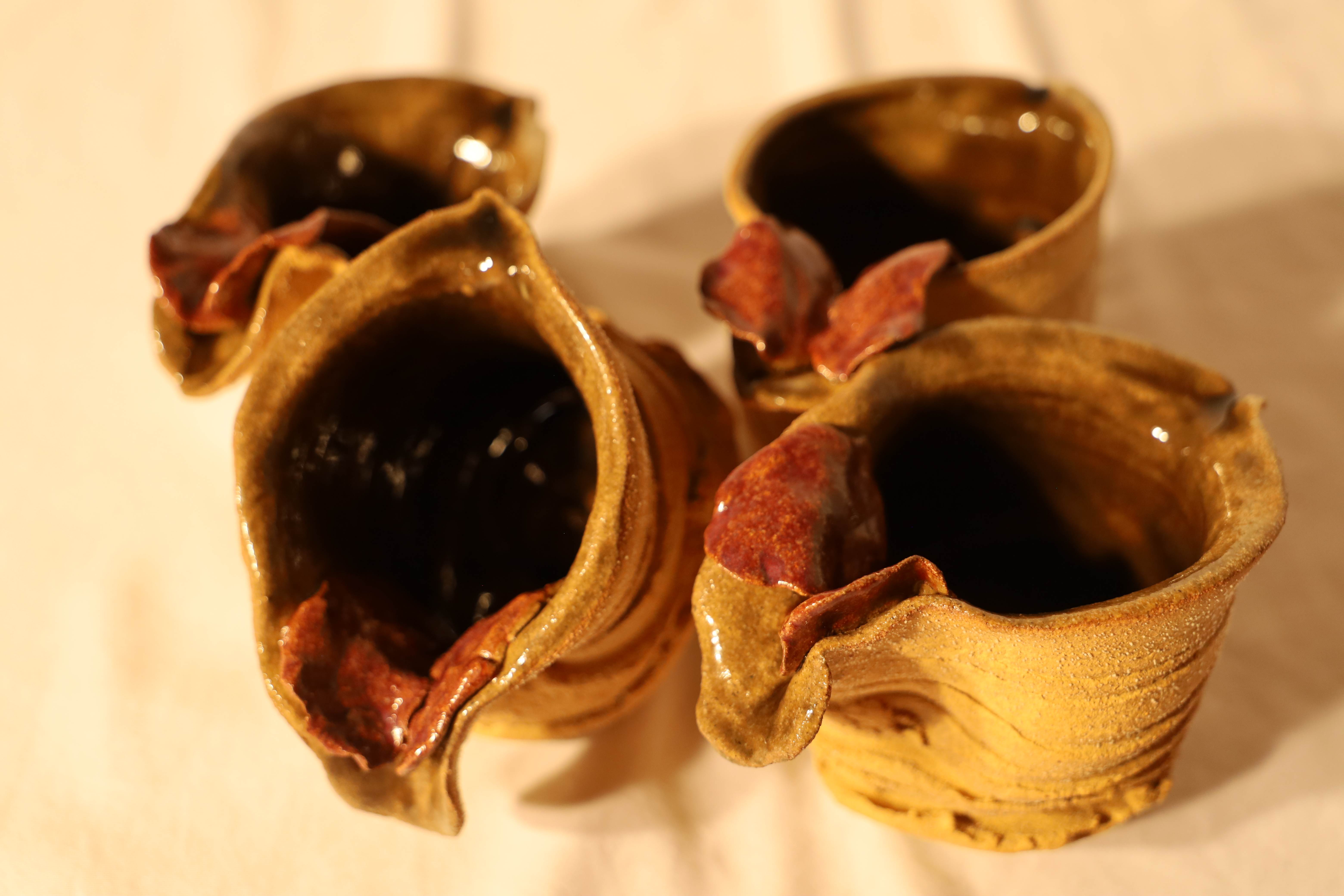 Dayna Ball, Petals, High Fire Death Valley Clay, Glaze, 4 x 3 x 6 inches, 2022 - 3 Petals opens a discussion on female genitals and the worldly experience as a woman. How much of life is spent open and how much is spent private? How much are others pouring from you, how much are they pouring into you, instead? With flesh tones prevalent, and a focus given to the inside, the viewer is permitted an intimate consideration of time spent with your own body as a woman, where access is yours and you choose what to do with that portion, privilege, and space.