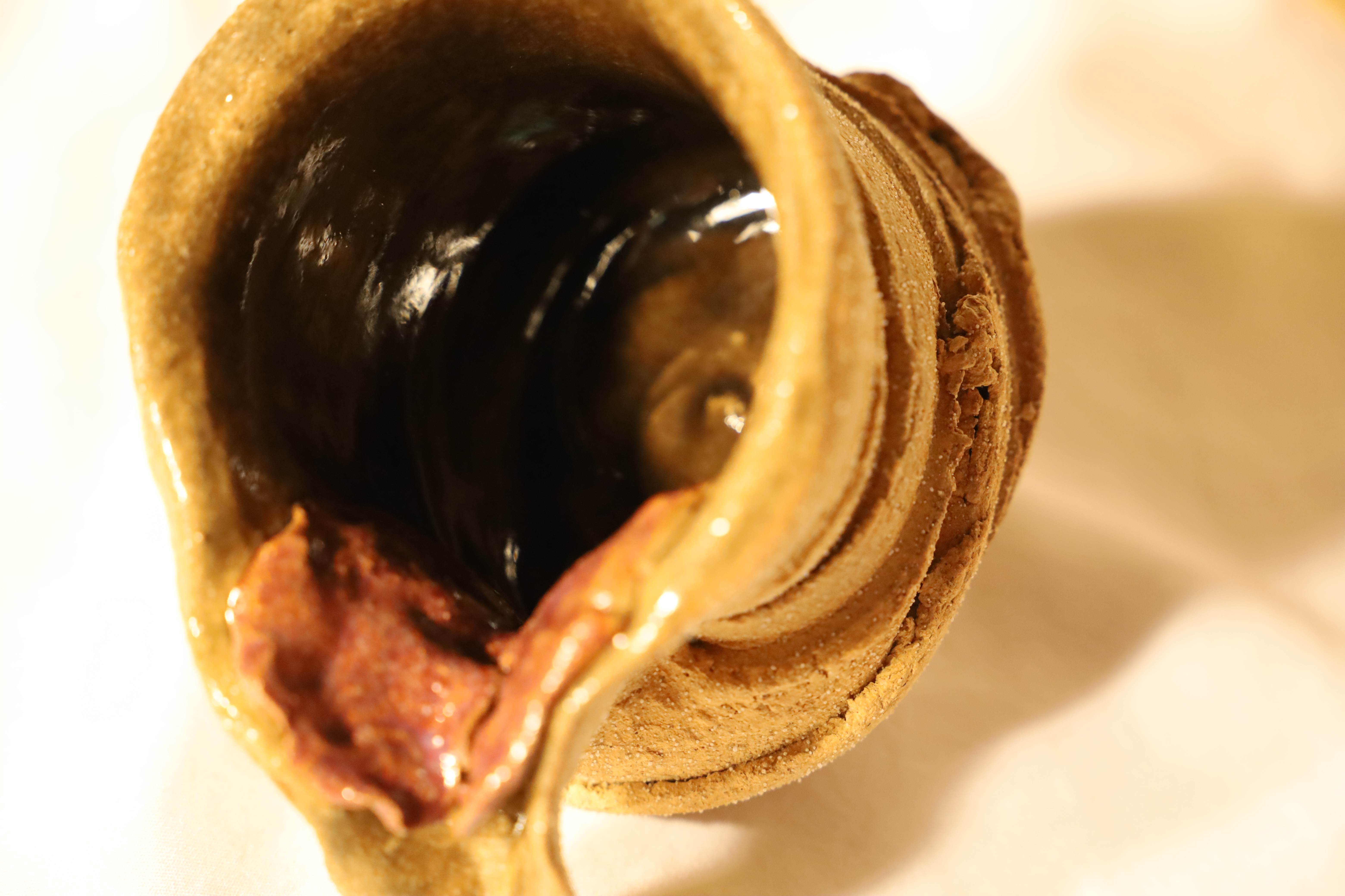 Dayna Ball, Petals, High Fire Death Valley Clay, Glaze, 4 x 3 x 6 inches, 2022 - 5 Petals opens a discussion on female genitals and the worldly experience as a woman. How much of life is spent open and how much is spent private? How much are others pouring from you, how much are they pouring into you, instead? With flesh tones prevalent, and a focus given to the inside, the viewer is permitted an intimate consideration of time spent with your own body as a woman, where access is yours and you choose what to do with that portion, privilege, and space.