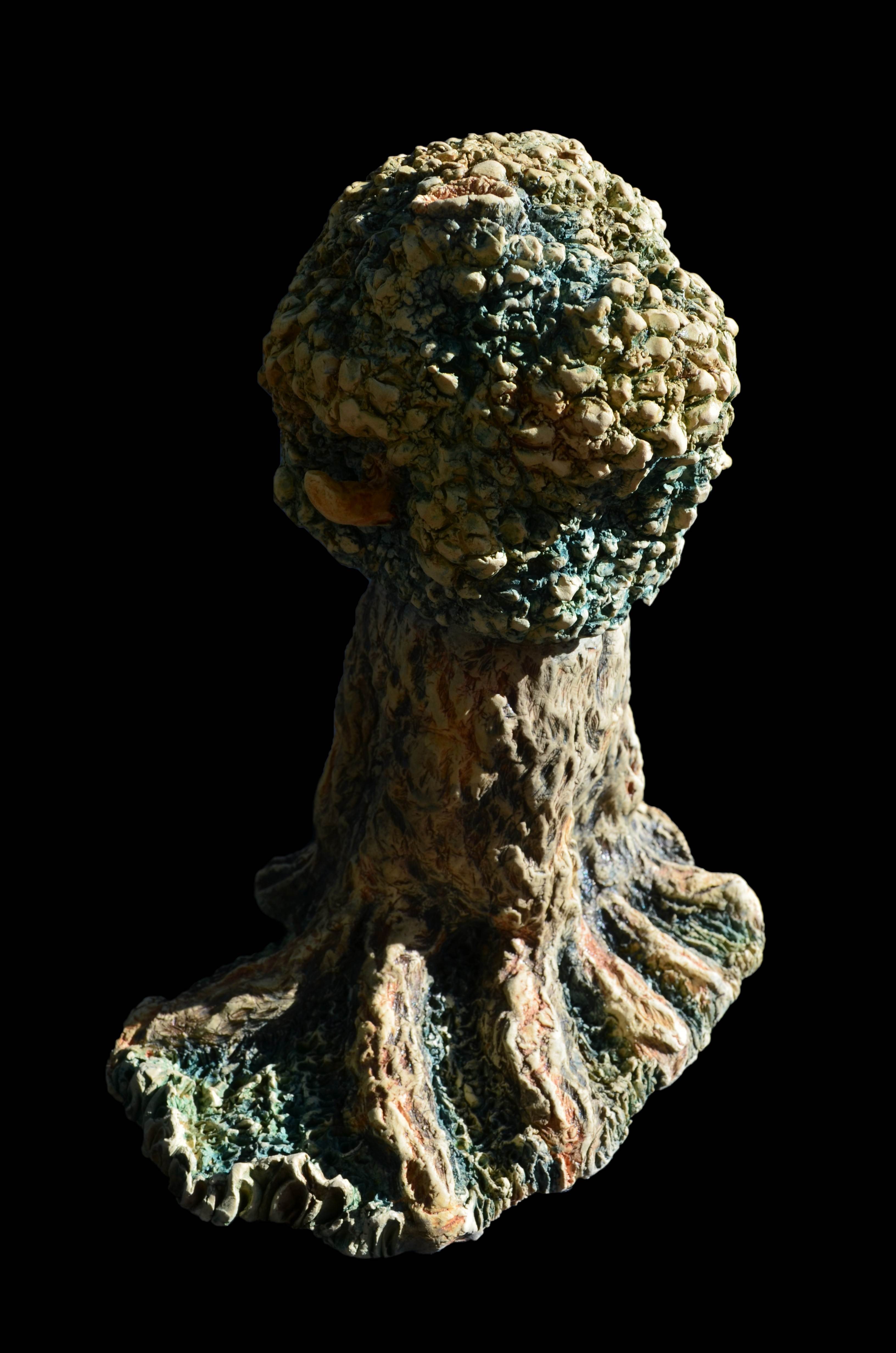 Dayna Ball, Tree Series, 2023 - 07_02 These tree series explore articulation of nature in clay. This pursuit is approached in terms of hand-built forms, meticulous incision of texture on surface, and color approach through mason stain discovery. This work seeks to explore the articulation of nature and environment as it relates to the artist, with heavy attention paid to past intellectual work in two-dimensional rendering of natural forms, with perception and idealization of nature playing a large role in that process.