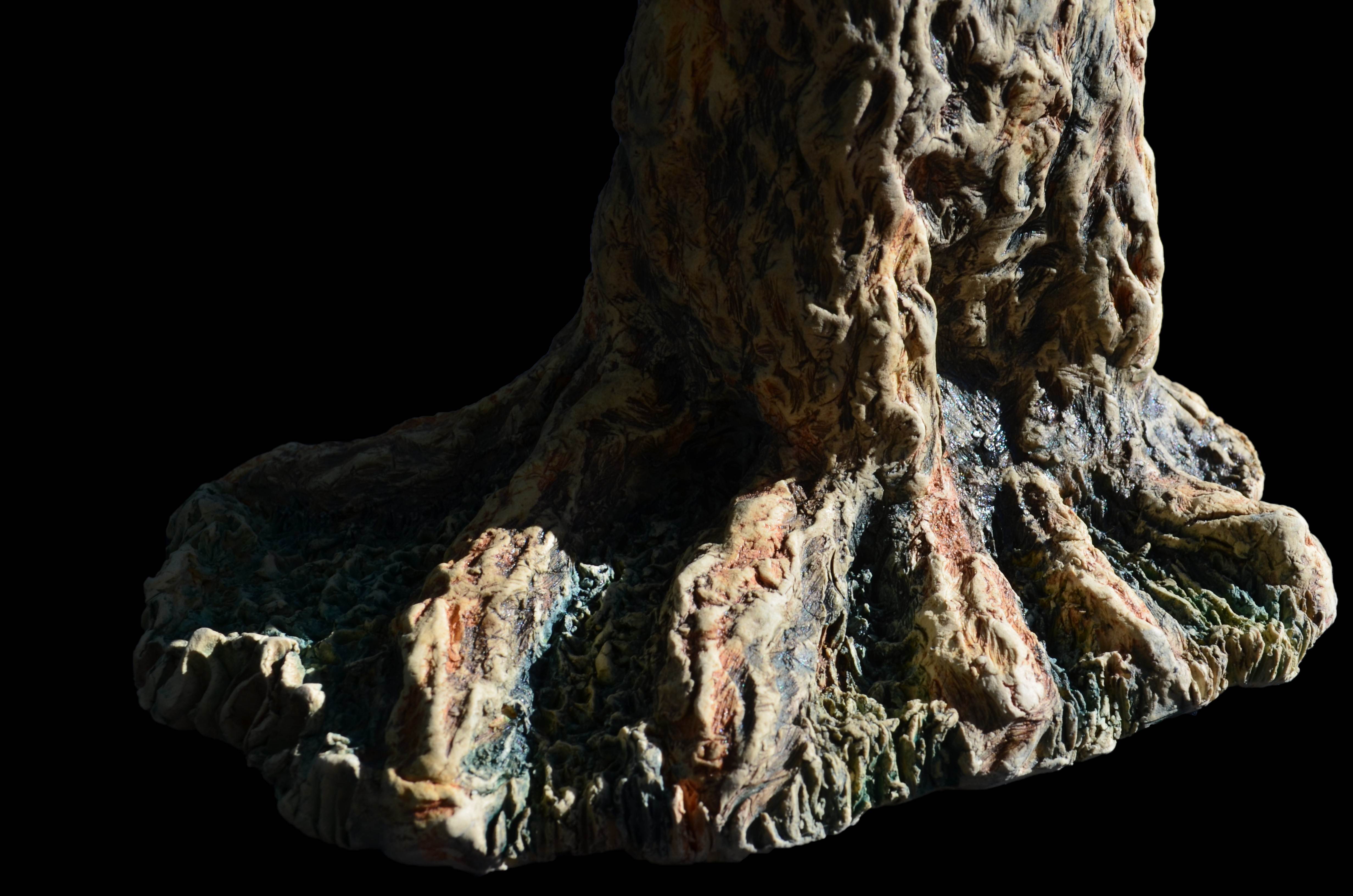 Dayna Ball, Tree Series, 2023 - 07_05 These tree series explore articulation of nature in clay. This pursuit is approached in terms of hand-built forms, meticulous incision of texture on surface, and color approach through mason stain discovery. This work seeks to explore the articulation of nature and environment as it relates to the artist, with heavy attention paid to past intellectual work in two-dimensional rendering of natural forms, with perception and idealization of nature playing a large role in that process.