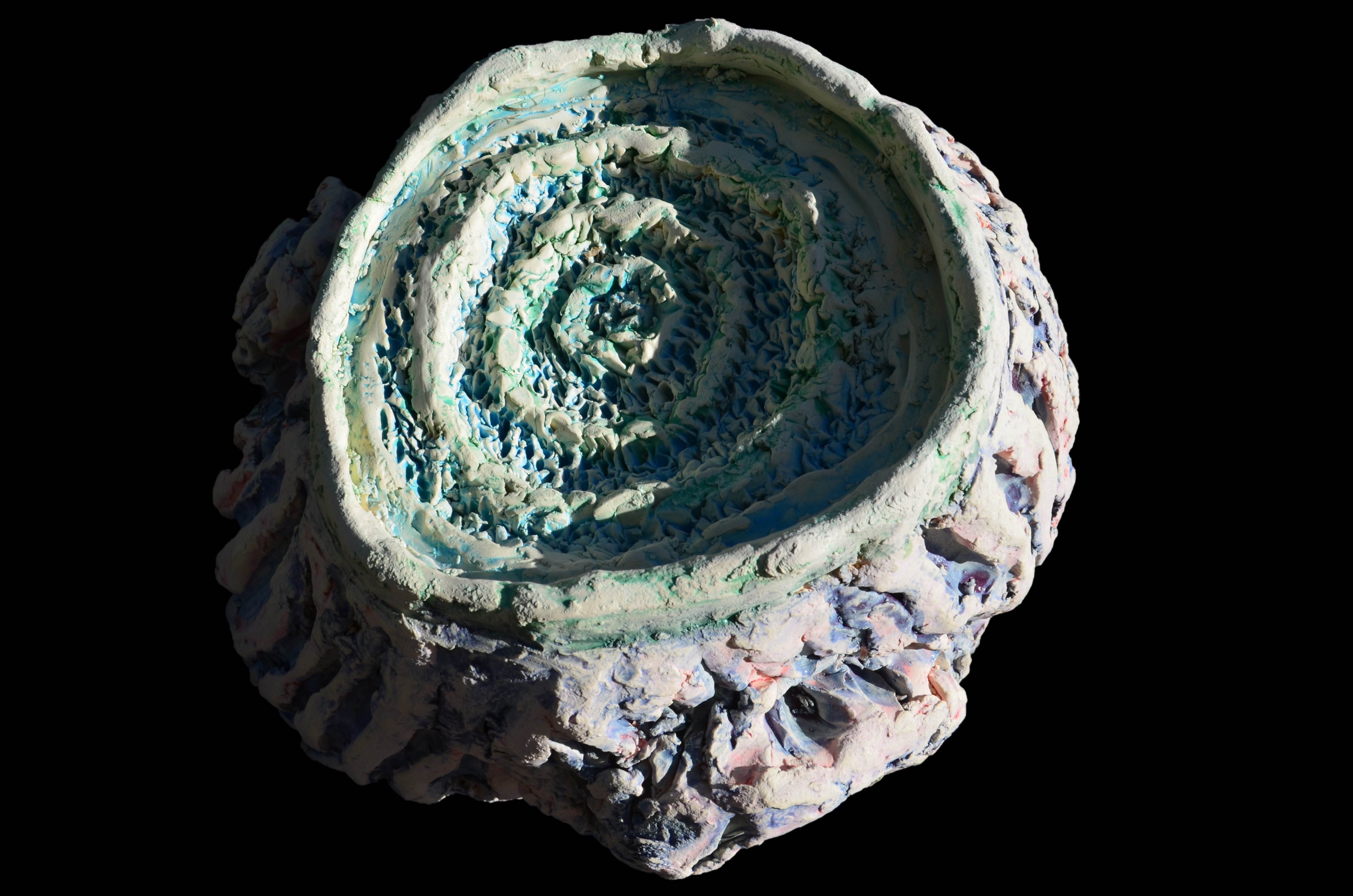 Dayna Ball, Tree Series, 2023 - 10_04 These tree series explore articulation of nature in clay. This pursuit is approached in terms of hand-built forms, meticulous incision of texture on surface, and color approach through mason stain discovery. This work seeks to explore the articulation of nature and environment as it relates to the artist, with heavy attention paid to past intellectual work in two-dimensional rendering of natural forms, with perception and idealization of nature playing a large role in that process.